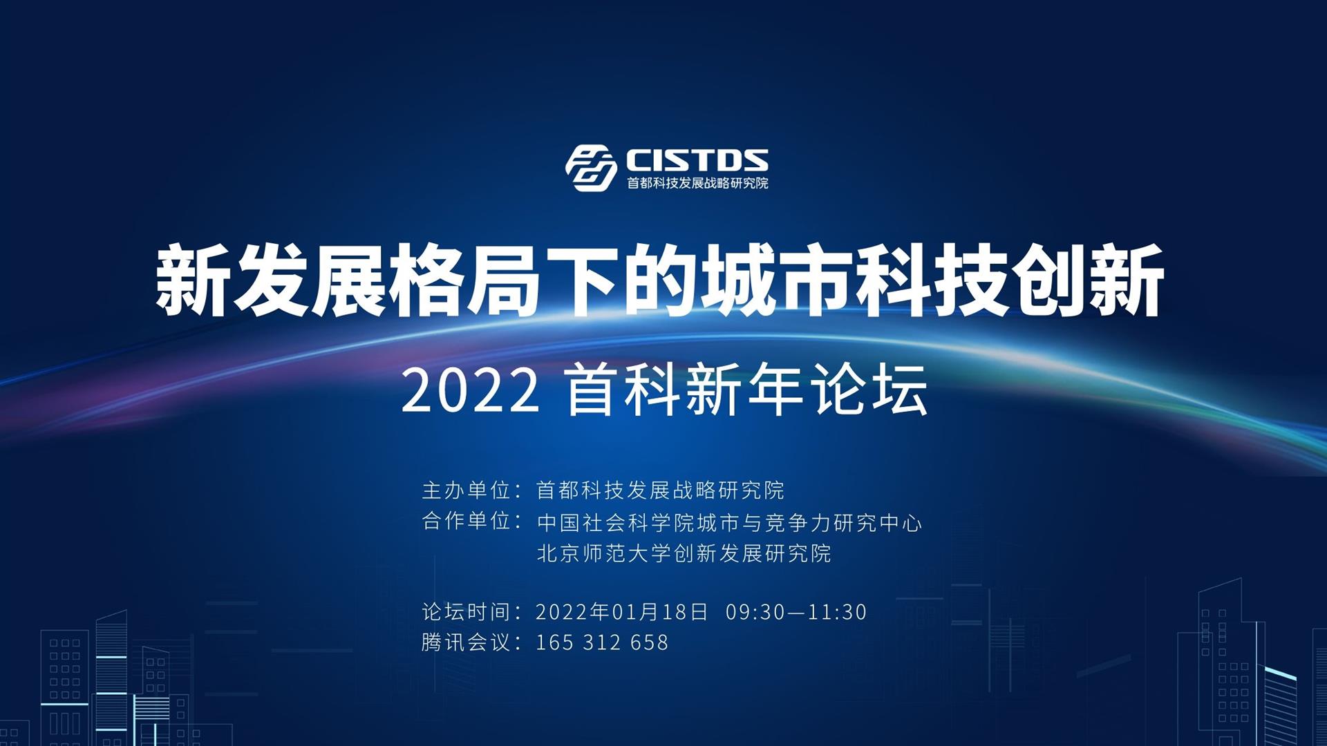 ? ? ? ?2022年1月18日,“2022首科新年論壇——新發(fā)展格局下的城市科技創(chuàng)新”以線上會議形式成功舉辦。論壇由首都科技發(fā)展戰(zhàn)略研究院主辦,中國社會科學(xué)院城市與競爭力研究中心和北京師范大學(xué)創(chuàng)新發(fā)展研究院協(xié)辦。