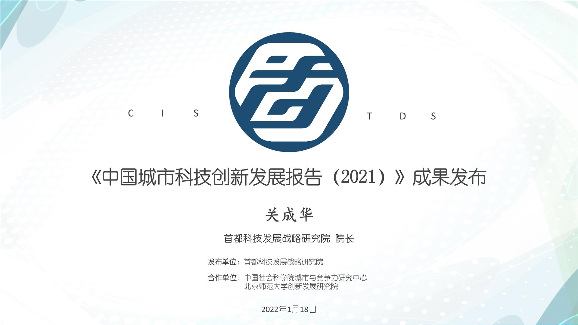 圖:關(guān)成華院長發(fā)布《中國城市科技創(chuàng)新發(fā)展報告(2021)》