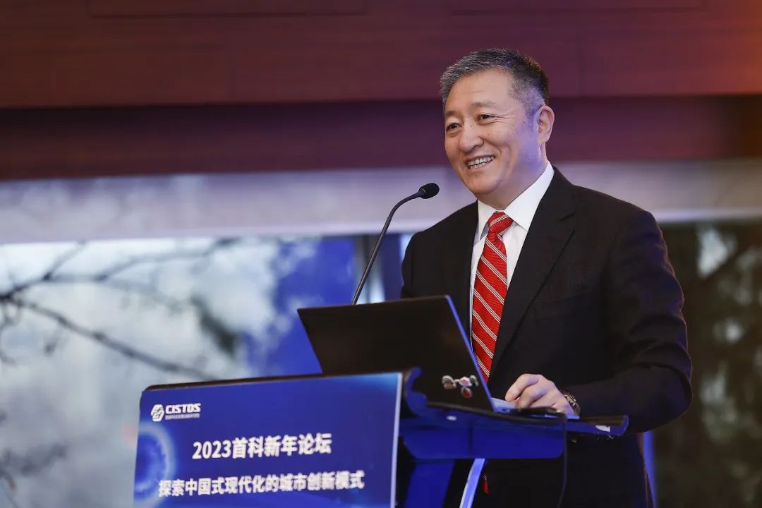 ? ? ? 黨的二十大報(bào)告提出,要以中國(guó)式現(xiàn)代化全面推進(jìn)中華民族偉大復(fù)興。習(xí)近平總書(shū)記指出,“我國(guó)經(jīng)濟(jì)社會(huì)發(fā)展和民生改善比過(guò)去任何時(shí)候都更加需要科技創(chuàng)新解決方案,都更加需要增強(qiáng)創(chuàng)新這個(gè)第一動(dòng)力。”創(chuàng)新不僅是推動(dòng)一個(gè)國(guó)家、一個(gè)民族向前發(fā)展的不竭動(dòng)力,也是推動(dòng)城市高質(zhì)量發(fā)展的重要力量。2023年2月12日,“2023首科新年論壇——探索中國(guó)式現(xiàn)代化的城市創(chuàng)新模式”在京成功舉辦。論壇由我院主辦,中國(guó)社會(huì)科學(xué)院城市與競(jìng)爭(zhēng)力研究中心和北京師范大學(xué)創(chuàng)新發(fā)展研究院聯(lián)合舉辦,北京基金小鎮(zhèn)協(xié)辦。我院院長(zhǎng)關(guān)成華教授為論壇主持開(kāi)幕。