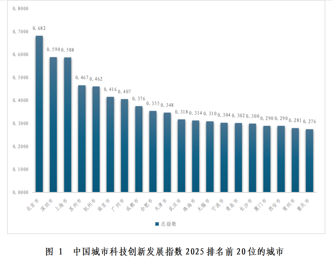報告顯示,2024年度中國城市科技創新發展指數排名前20位的城市依次是:北京市、深圳市、上海市、蘇州市、杭州市、南京市、廣州市、成都市、合肥市、天津市、武漢市、珠海市、無錫市、寧波市、青島市、長沙市、廈門市、西安市、常州市、重慶市。