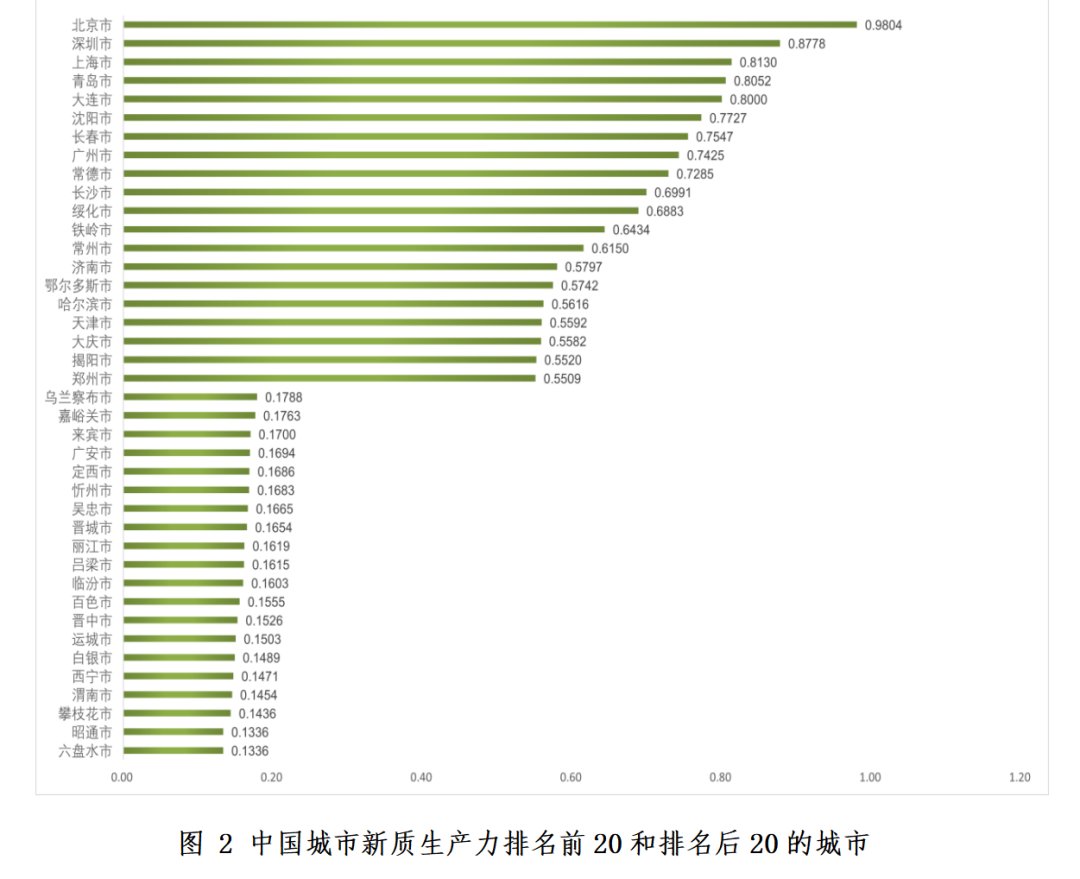 報告顯示,2024年度新質生產力排名在前20位的城市依次是:北京市、深圳市、上海市、青島市、大連市、沈陽市、長春市、廣州市、常德市、長沙市、綏化市、鐵嶺市、常州市、濟南市、鄂爾多斯市、哈爾濱市、天津市、大慶市、揭陽市、鄭州市。
